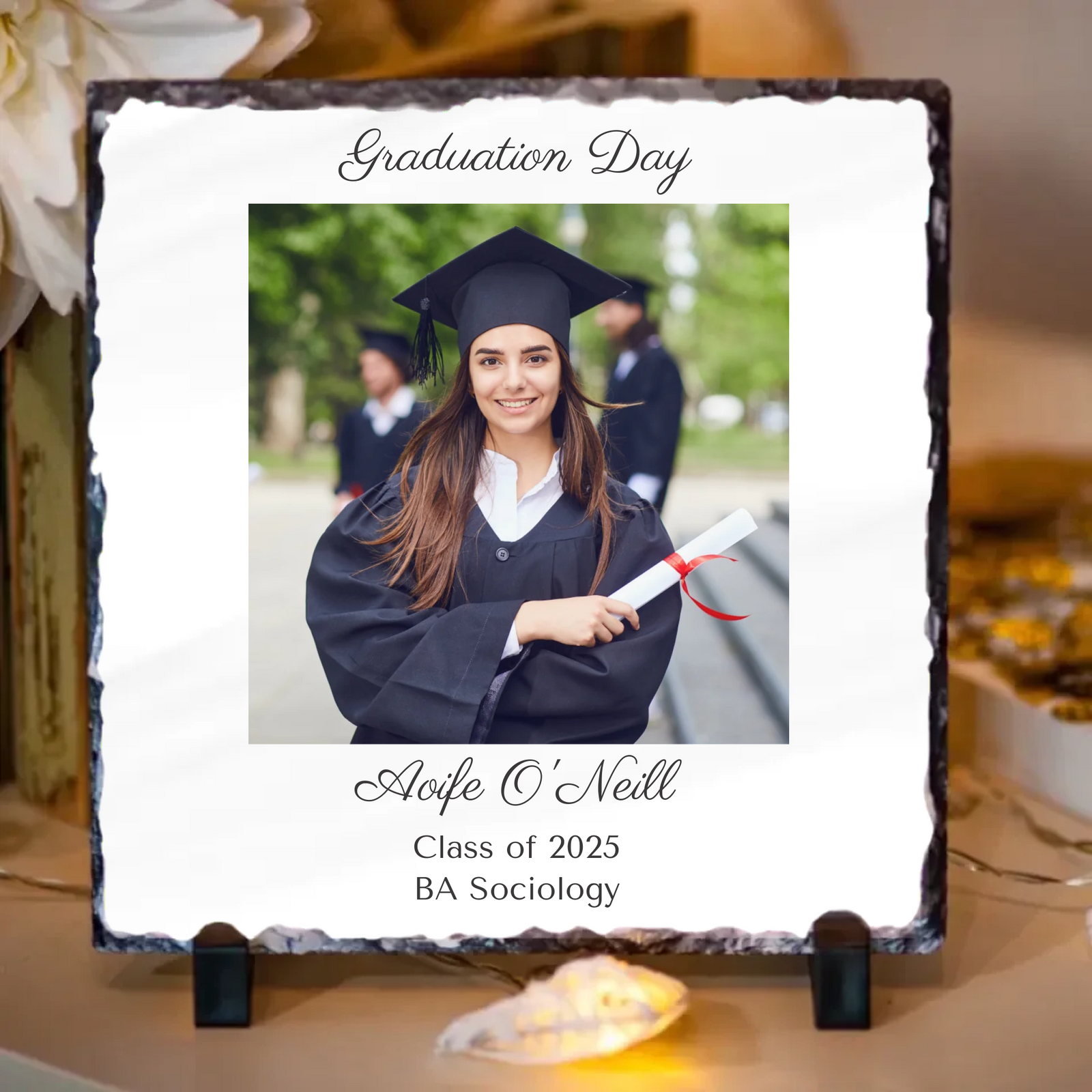 Upload your favourite graduation photo — whether it’s cap-and-gown pride, a family celebration, or a candid shot — and we’ll print it directly onto slate for a textured, high-quality finish. Add the graduate’s name, date, and a personal message, and you’ve got a one-of-a-kind gift that captures the spirit of their achievement.
