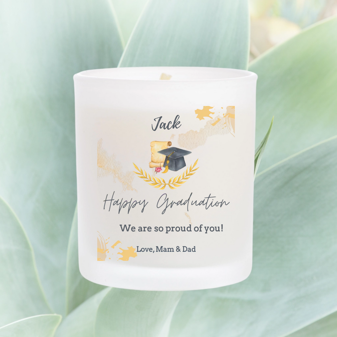 Personalised Scented Candle for Graduation - Cap & Scroll