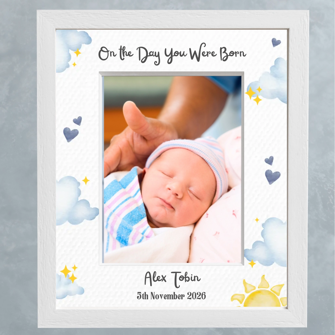 Personalised Baby Photo Frame - Sunshine Blue - Mount Customised by You!