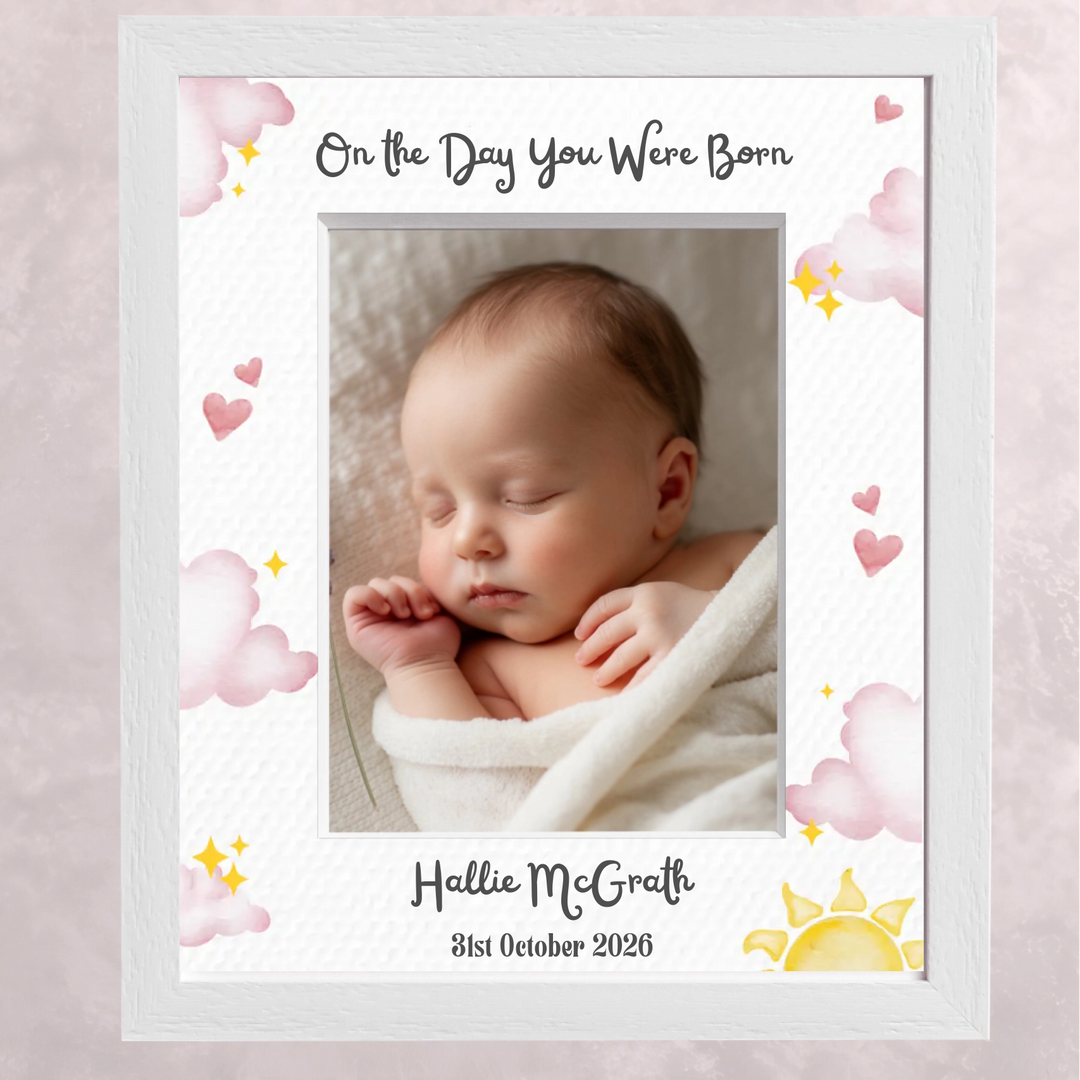 Personalised Baby Photo Frame - Sunshine Pink - Mount Customised by You!