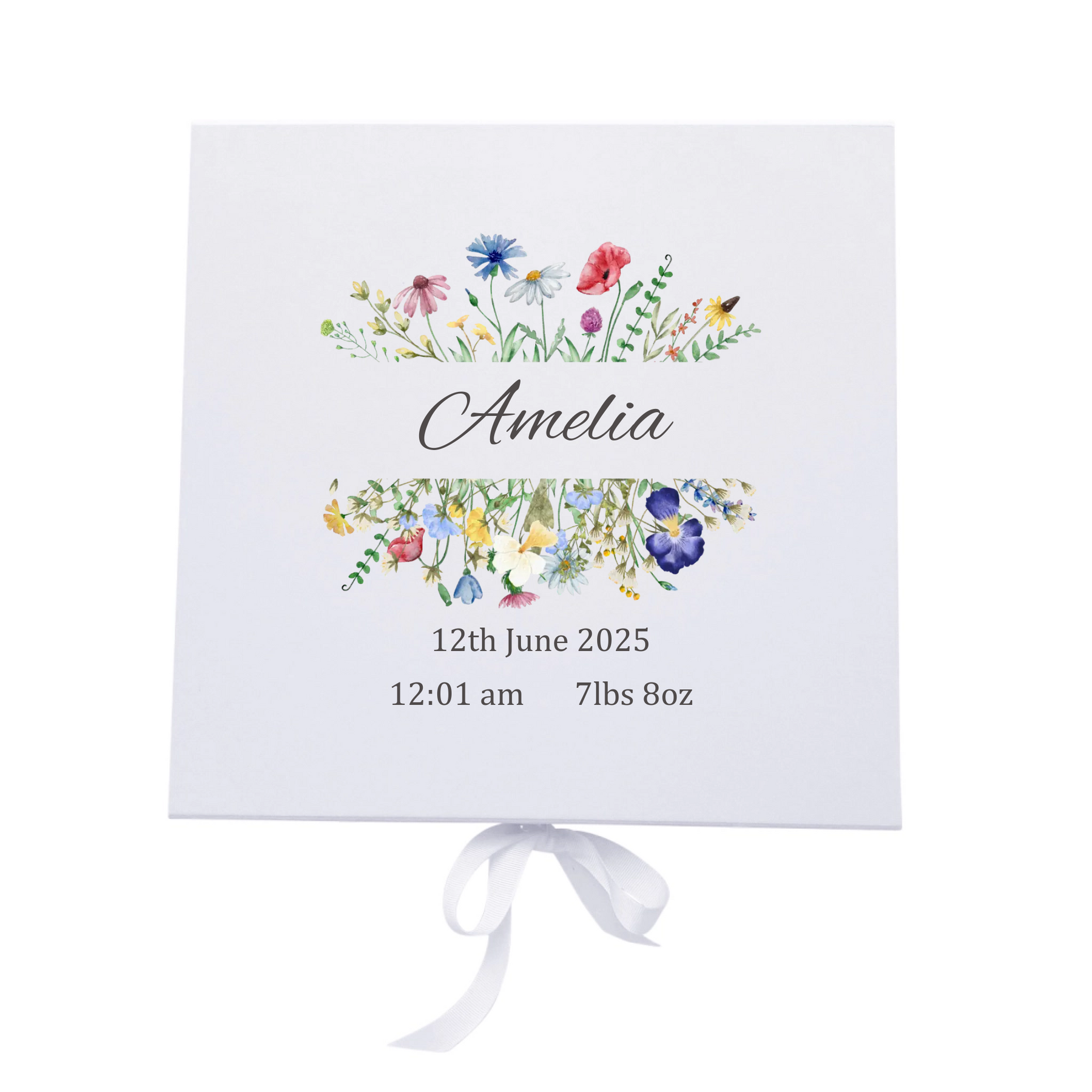 • Luxury white matt laminated finish Keepsake Box measures 12" x 12"