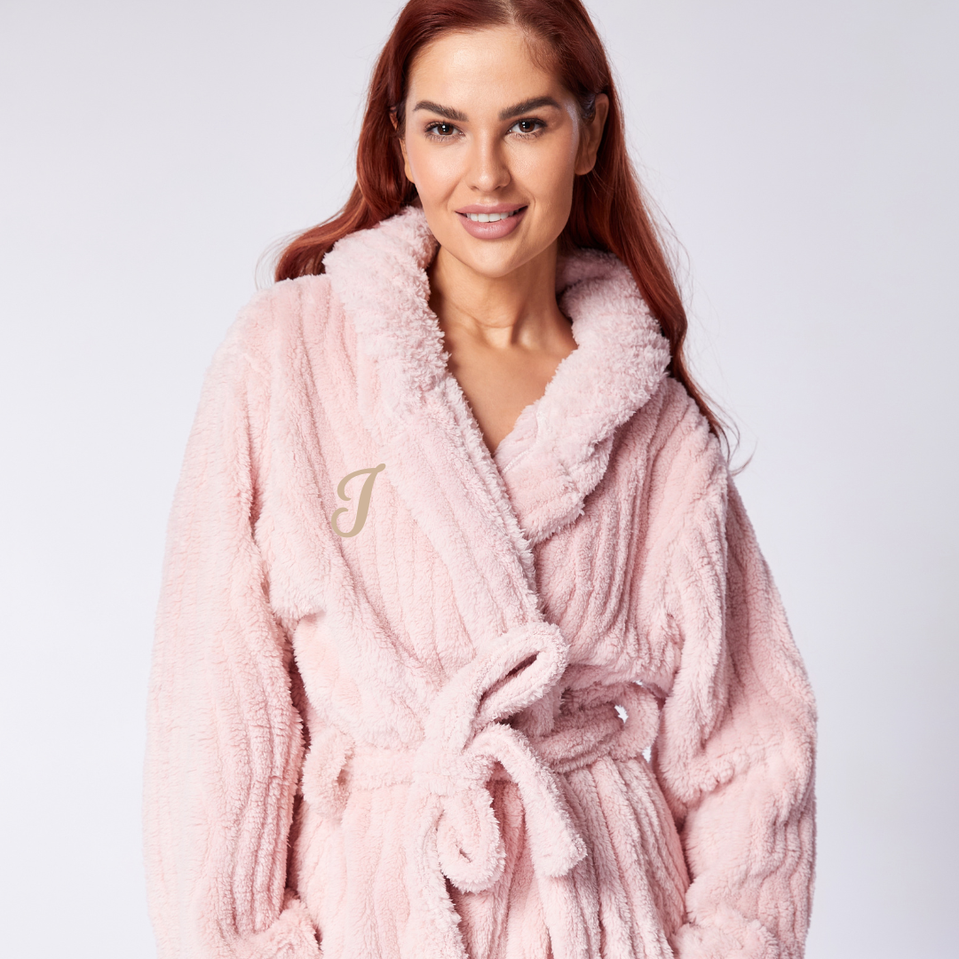 Personalised Hooded Jacquard Dressing Gown - Luxury Pink