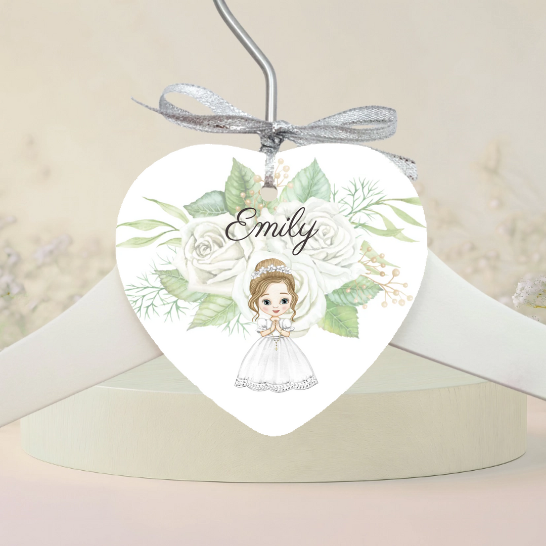 Personalised Heart Ornament & Hanger for Communion Girl Dress