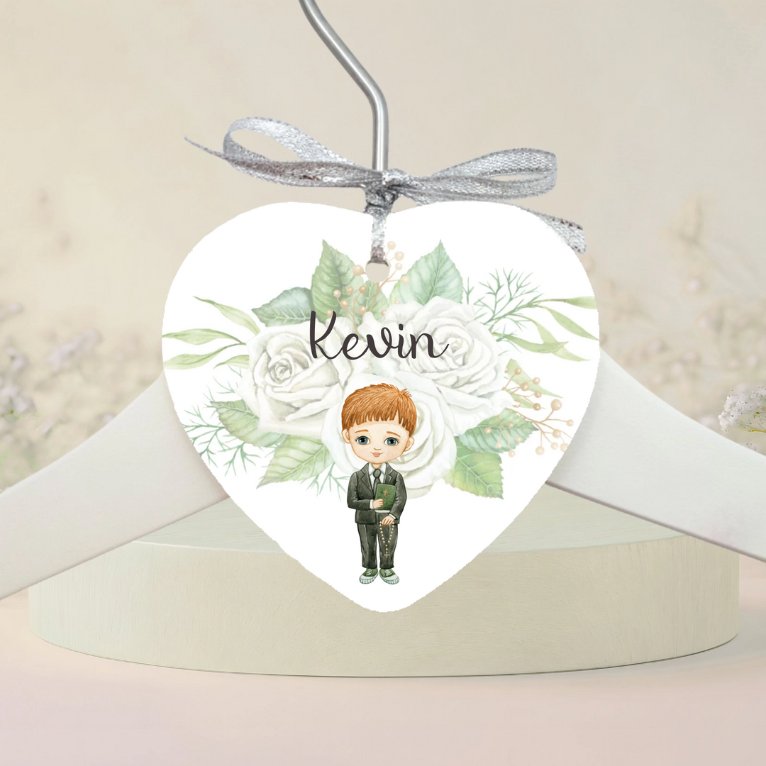 Personalised Heart Ornament & Hanger for Communion Boy Suit