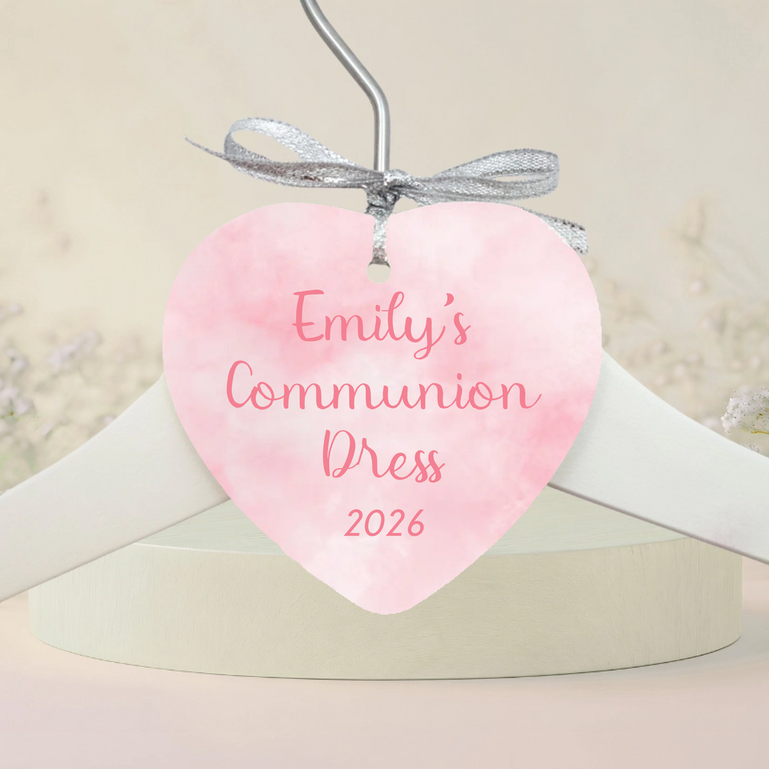 Personalised Heart Ornament & Hanger for Communion Girl Dress - Watercolour