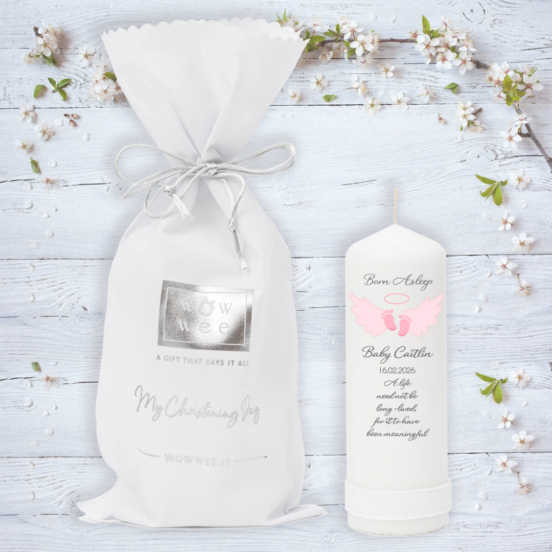 Personalised Memorial Candle - Born Asleep - Pink, Blue & Grey Options