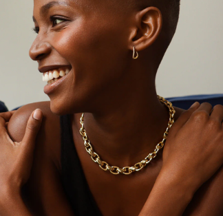• The newest chunky gold necklace from Betty and Biddy. Crossing oval links connect to give a luxe gold layering necklace.
