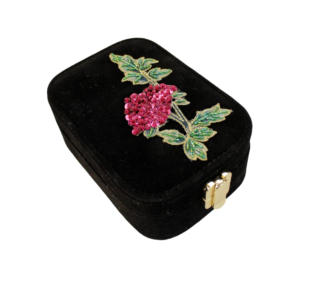 Luxury Velvet Jewellery Box - Black & Beaded Floral