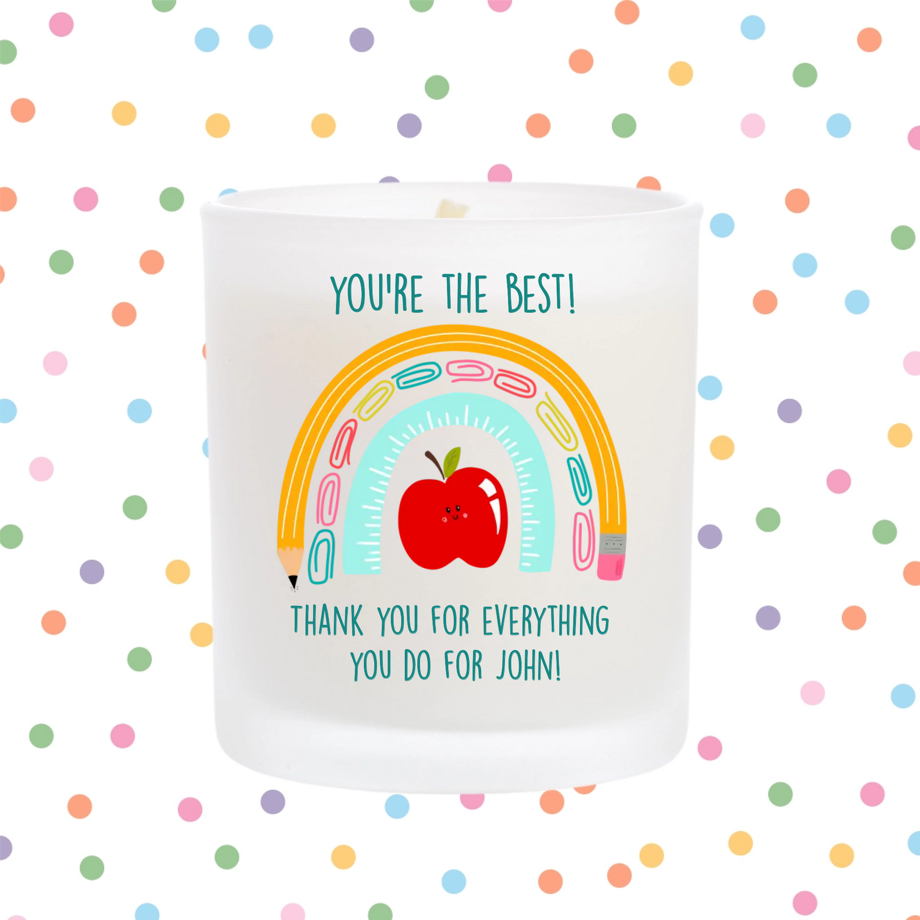 - Looking for a unique and meaningful gift for a special teacher in your life to say Thank You? Look no further than our personalised candle, customised with name.