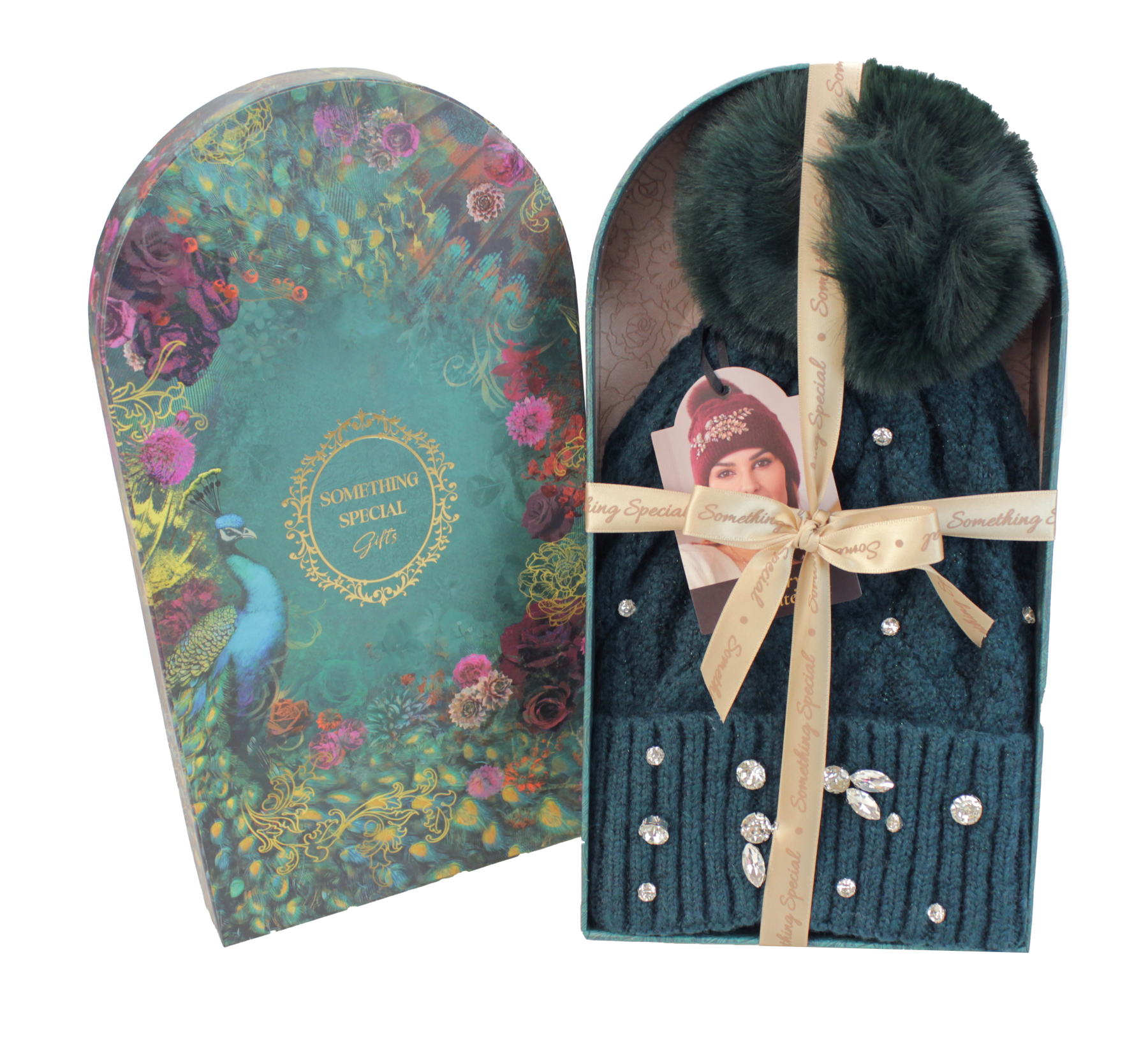 Ladies Diamante Hat in Luxury Gift Box - Teal