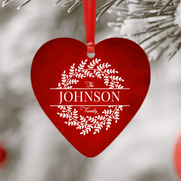 Personalised Christmas Heart Ornament - Family Name | Personalised Family Christmas Decor | Personalised Family Name Christmas Tree Decoration | Personalised Love Heart Family Ornament for Christmas | Design Your Own Christmas Ornament for Family | Monogram Christmas Decoration Family | WowWee.ie