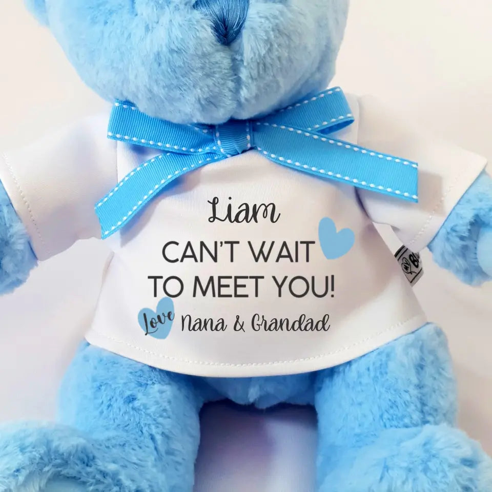 Personalised Blue Teddy Bear - Can't Wait to Meet You - Baby Boy