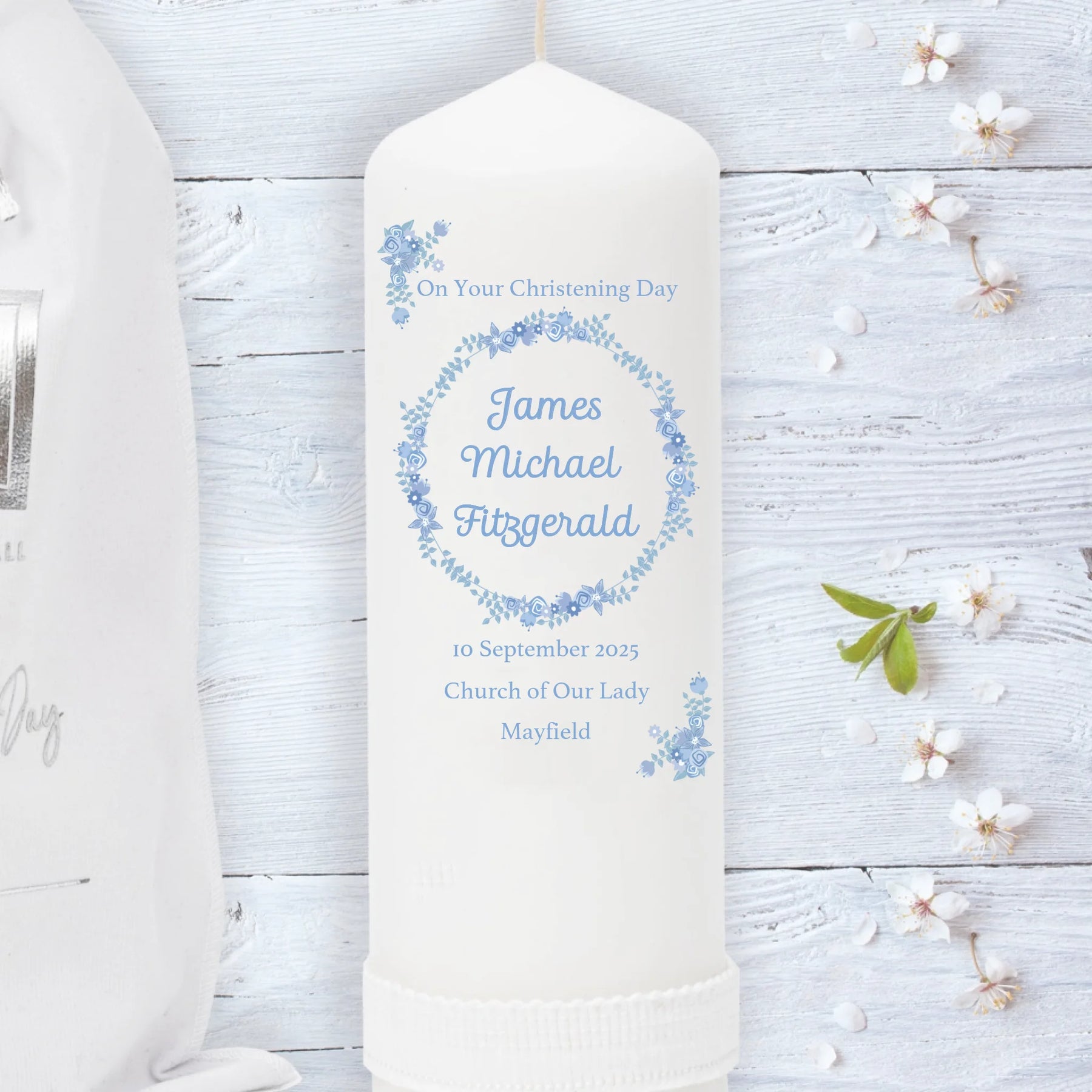 Personalised Christening Candle for Boys - Faith & Floral