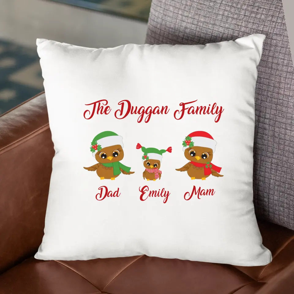 Personalised Christmas Cushion - Owl Family