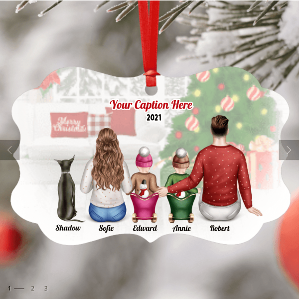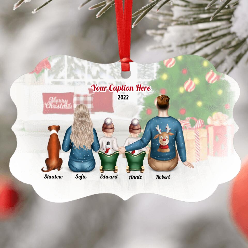 Personalised Christmas Family with Dog Ornament - Parents & 2 Babies