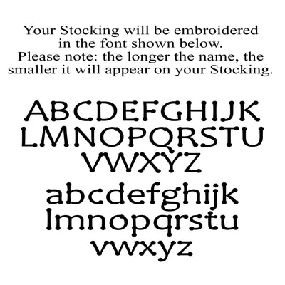 - This felt Christmas stocking is embroidered with a name of your choice in white thread on the wine trim. Name will be approximately 8cm in length - height will depend on how many letters are in the name