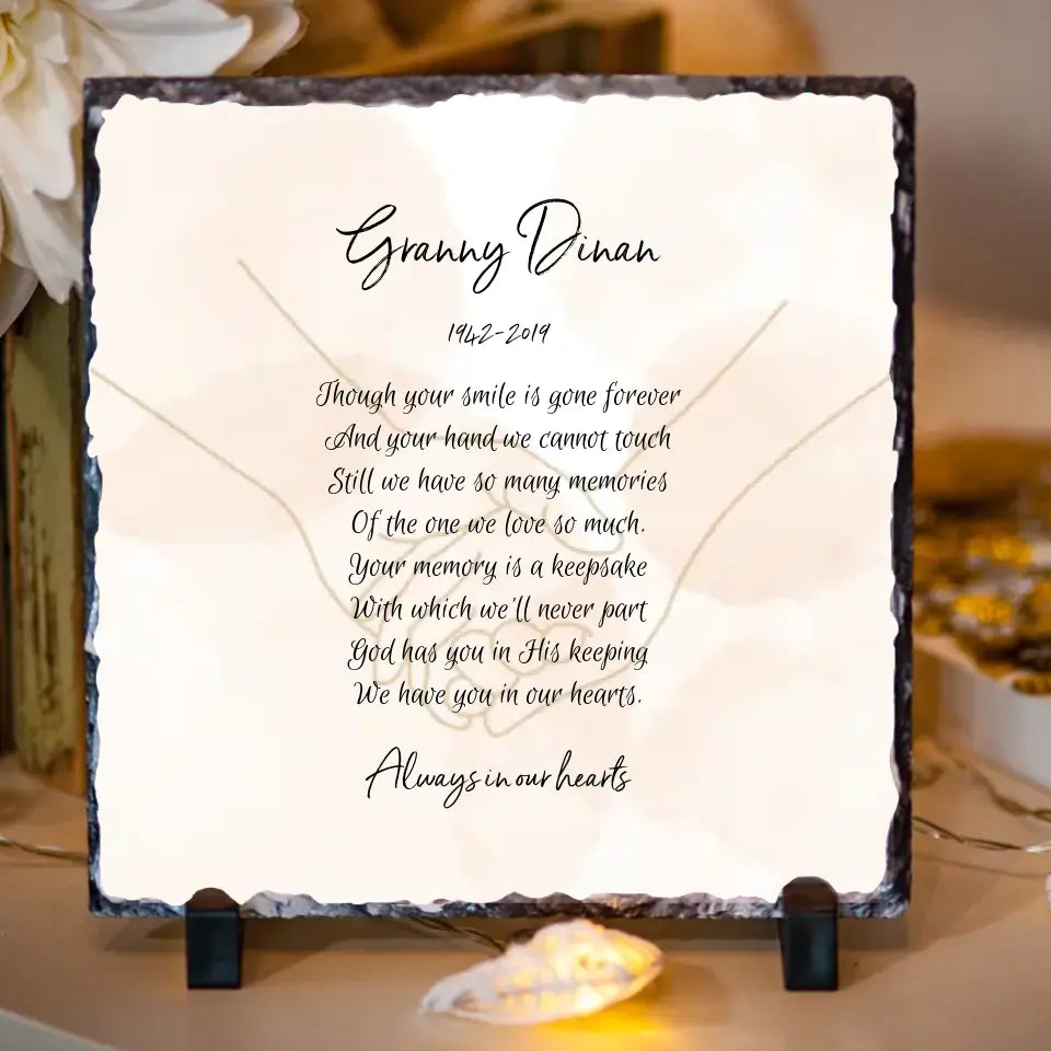 - Honor cherished memories with our custom memorial slate, a timeless tribute to your loved ones