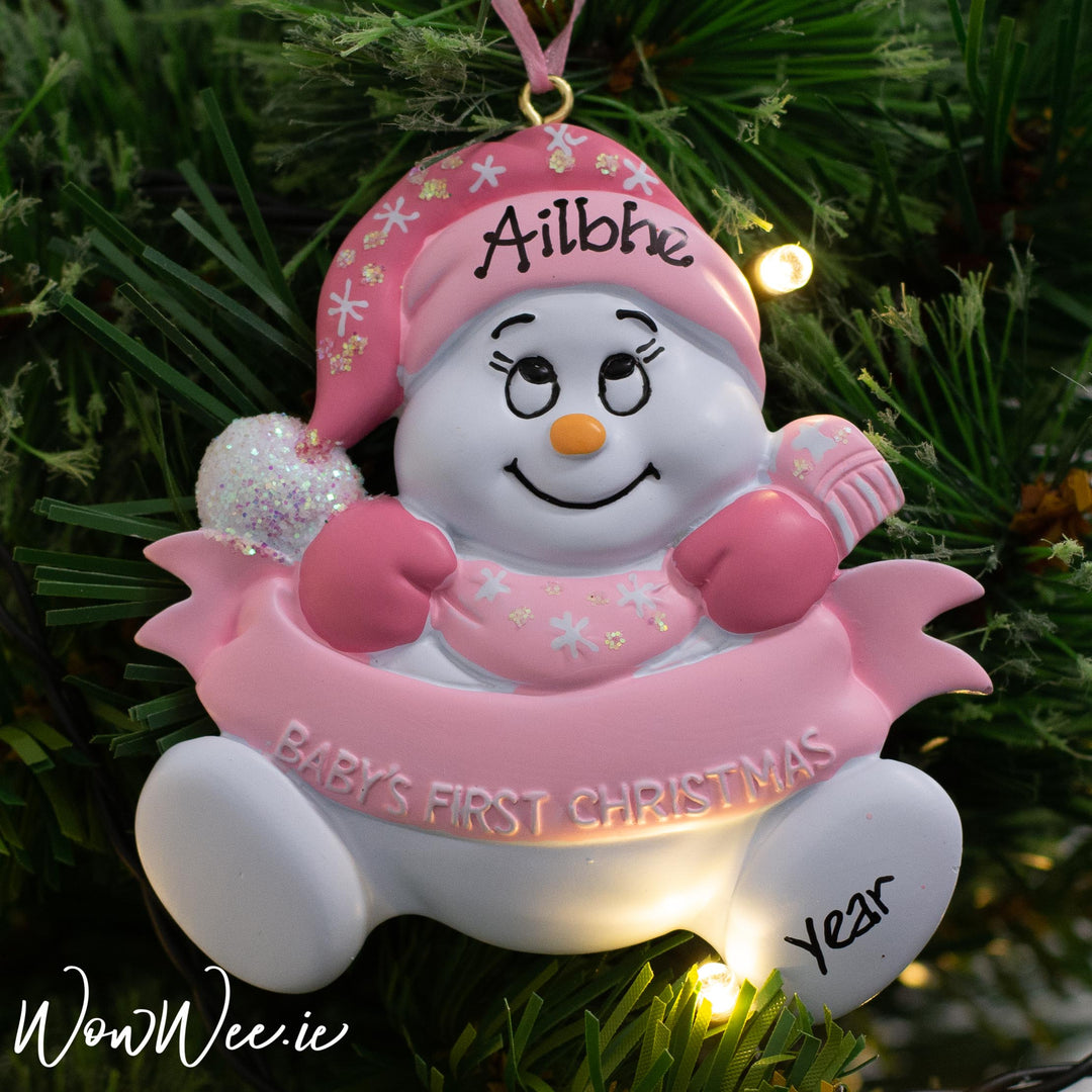 Personalised Baby's 1st Christmas Ornament - Pink Snowman with Banner